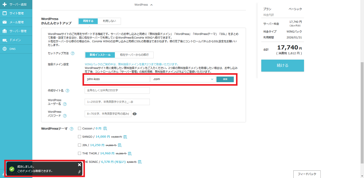 ConoHa WINGでドメインを取得する