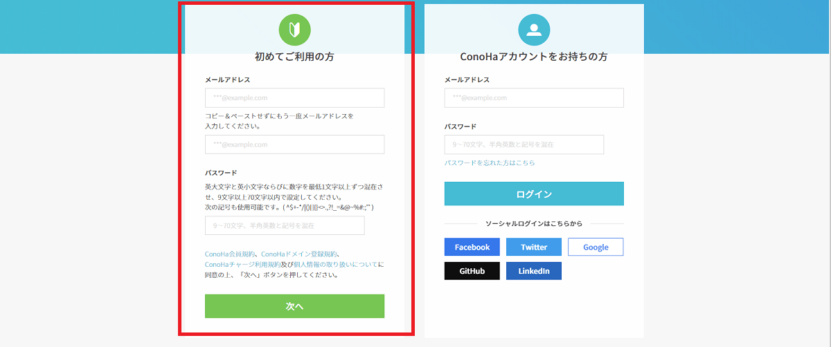 プランを申し込む前は、新規アカウント作成が必要になります。