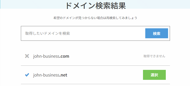 プランを決めて契約しても、ほしいドメインが取得できないケースもあるので、事前に確認してみましょう。