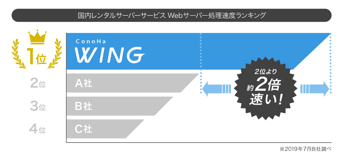 ConoHa WINGは公式サイトで「国内最速」と堂々と表示しており、Webサイト(ブログなど)に最適なサーバーです。